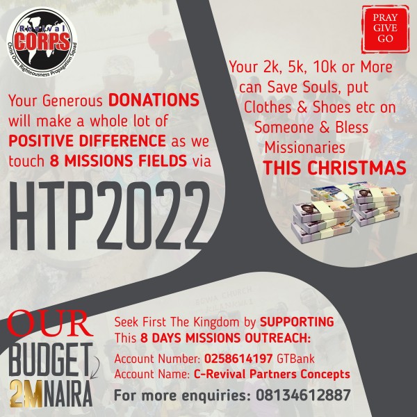Send your HTP22 support to Account details:- (0258614197; Gt Bank ; C-Revival Partners Concepts)