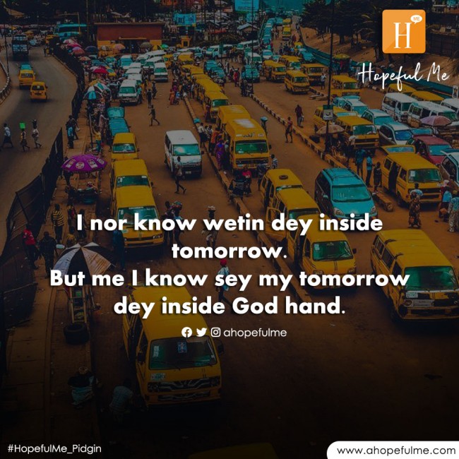 But no lose morale, remember sey your tomorrow dey God hand.