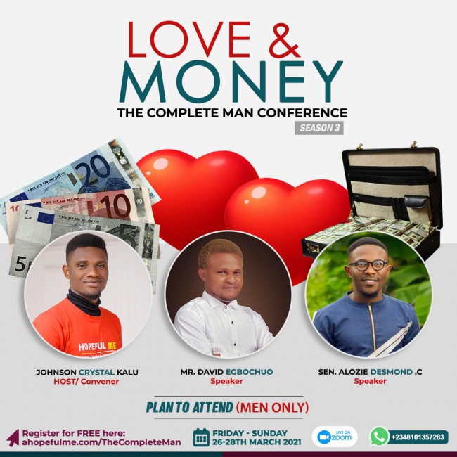 LOVE AND MONEY (Complete Man Conference) is kick-starting this Friday and I promise you a very educating and exciting weekend.