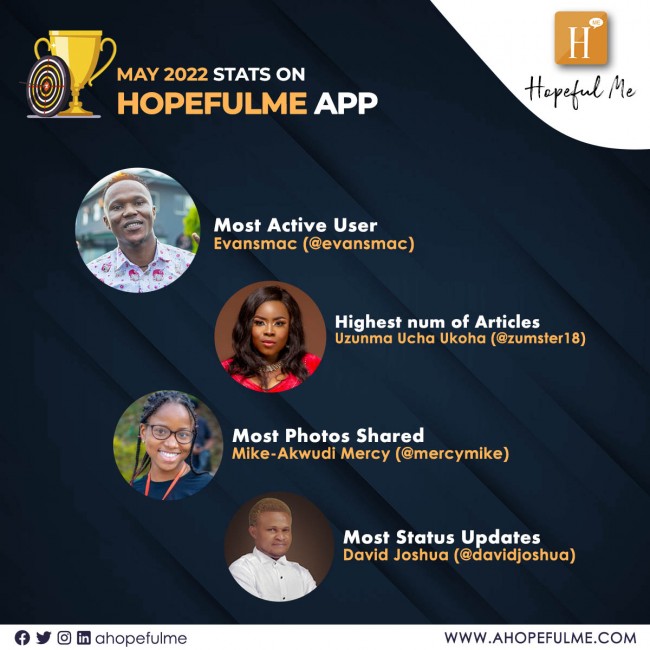 Before we wrap up this month, we want to appreciate members who had outstanding activities on the #HopefulMe App.🔥