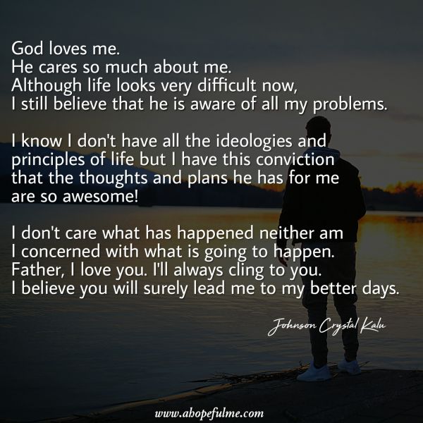 I don't care what has happened neither am I concerned with what is going to happen. Father, I love you. I'll always cling to you. I believe you will surely lead me to my better days.