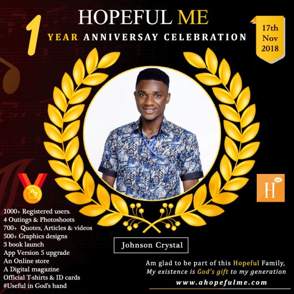 As we celebrate our 1Year anniversary on 17th November 2018, we want to specially thank you for being part of this Hopeful family.