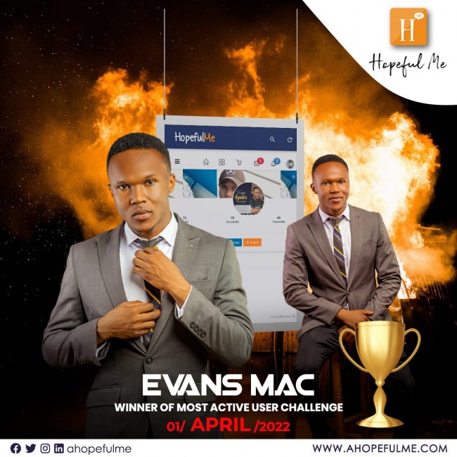 Evans Mac wins the most active user challenge.π Meanwhile login on the App and check...