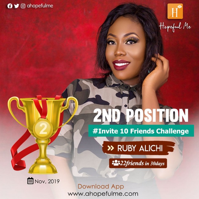 With 22 friend in 30days, 2nd position goes to Ruby Alichi. Congratulations dear #TeamENUGU