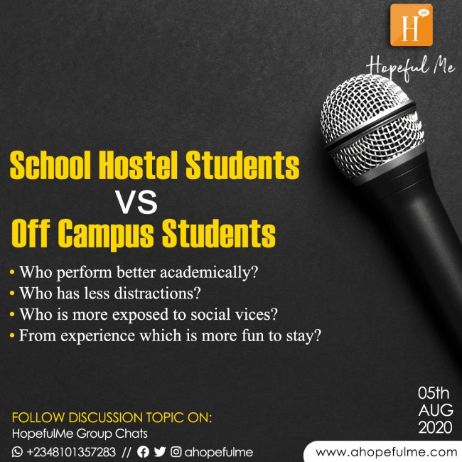 Yesterday's discussion topic: "Staying in the hostel VS Staying Off Campus" was a very interesting...