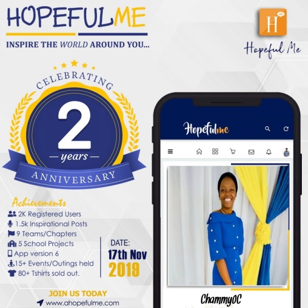 It's 2years of inspiring lives and making impacts. God bless hopefulme team!! Long live hopefulme.