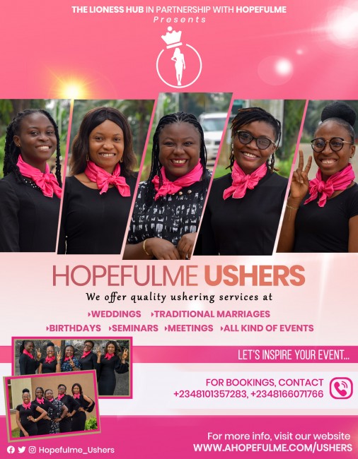 I present to you Hopefulme/LionessHub Ushers. An ushering agency with class.