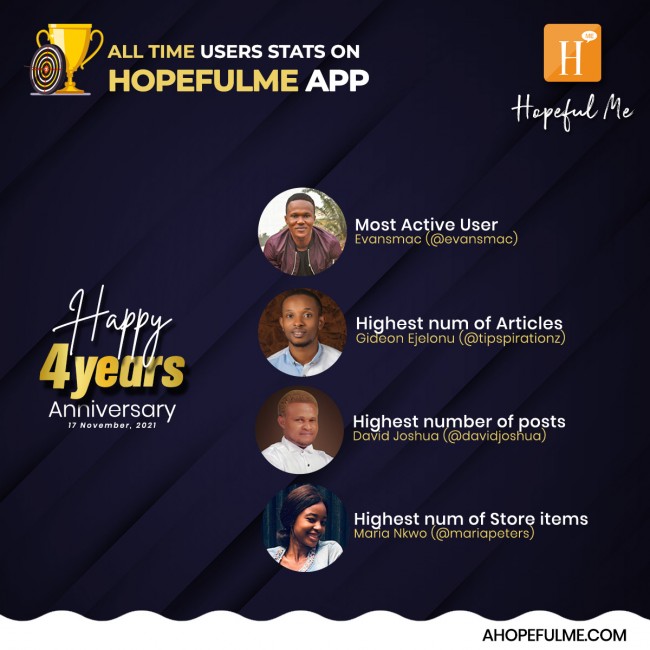 All time most active users on HopefulMe App 2021