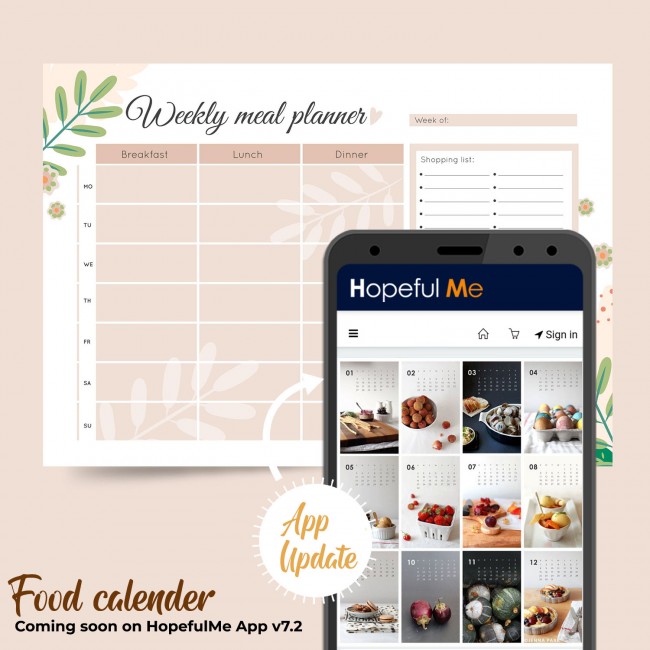 We are adding a Food calendar / Weekly meal planner feature to the Hopeful Me V7.2 app.