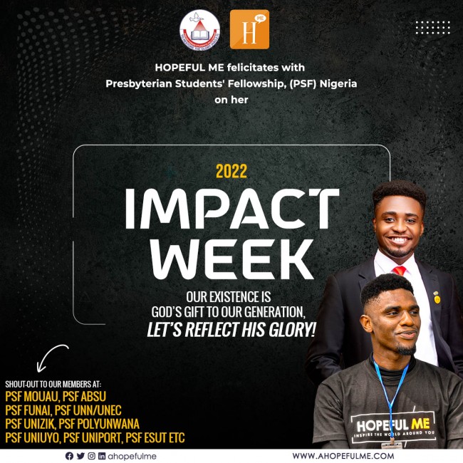 At HopefulMe, we felicitate with PSF Nigeria on her 2022 Impact Week.