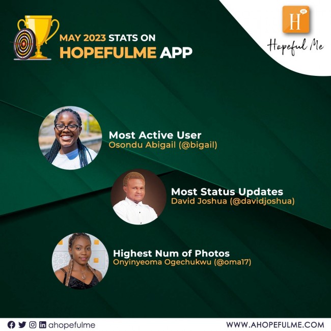 Most active users on HopefulMe App in the month of May 2023, Congratulations ππΎππΎ