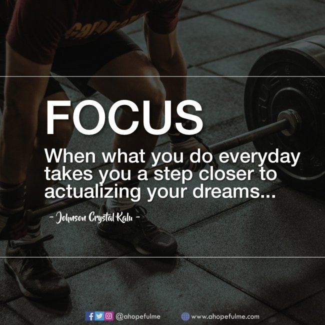 Focus is when what you do everyday takes you a step closer to actualizing your dreams.