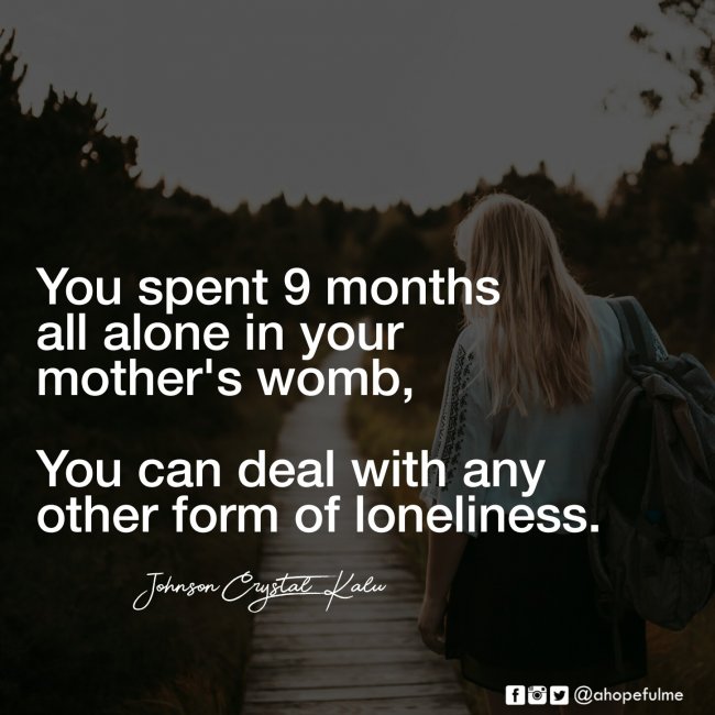 Loneliness is not an excuse! You spent 9 months all alone in your mother's womb,...